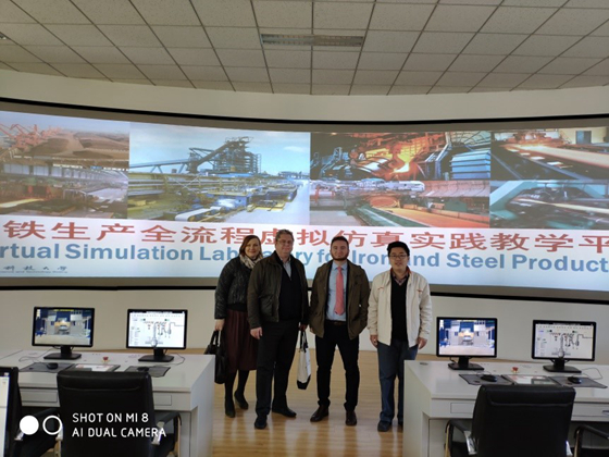 随后,代表团一行参观了学生创新创业基地、电子技术实习基地以及钢铁生产全流程虚拟仿真实践教学平台。通过对学科交叉、航模、MEI机器人实验室,工业过程智能化实验室以及虚拟仿真实践教学软件的观摩,详细了解我院工程型人才培养实践教学方面的情况。在校期间,代表团还参观了校史馆及我校材料测试中心实验室