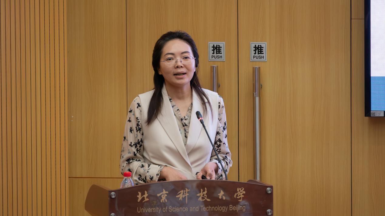 碳中和成人在线 执行院长侯新梅以“碳中和研究院、碳中和成人在线 介绍与学生培养规划”为主题,介绍了研究院、成人在线 的基本情况、师资力量和以全面发展为导向的人才培养模式,鼓励同学们在知识、能力、品德、体魄等方面均衡发展,对接未来社会对复合型人才的需求。